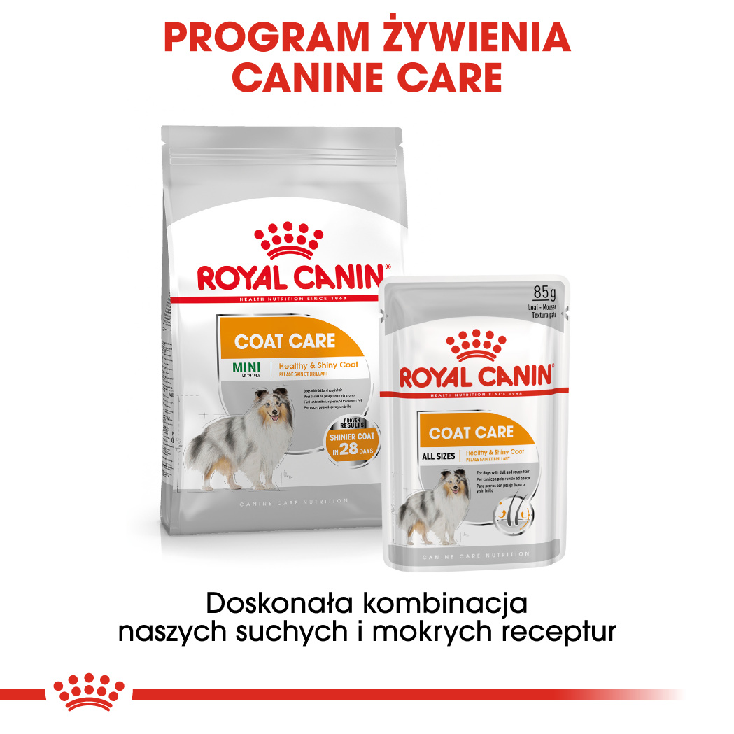 ROYAL CANIN® Mini Coat Care, to kompletna karma o wysokiej smakowitości, która pielęgnuje skórę i sierść Twojego psa, dając mu nie tylko piękny wygląd, ale i zdrowie.