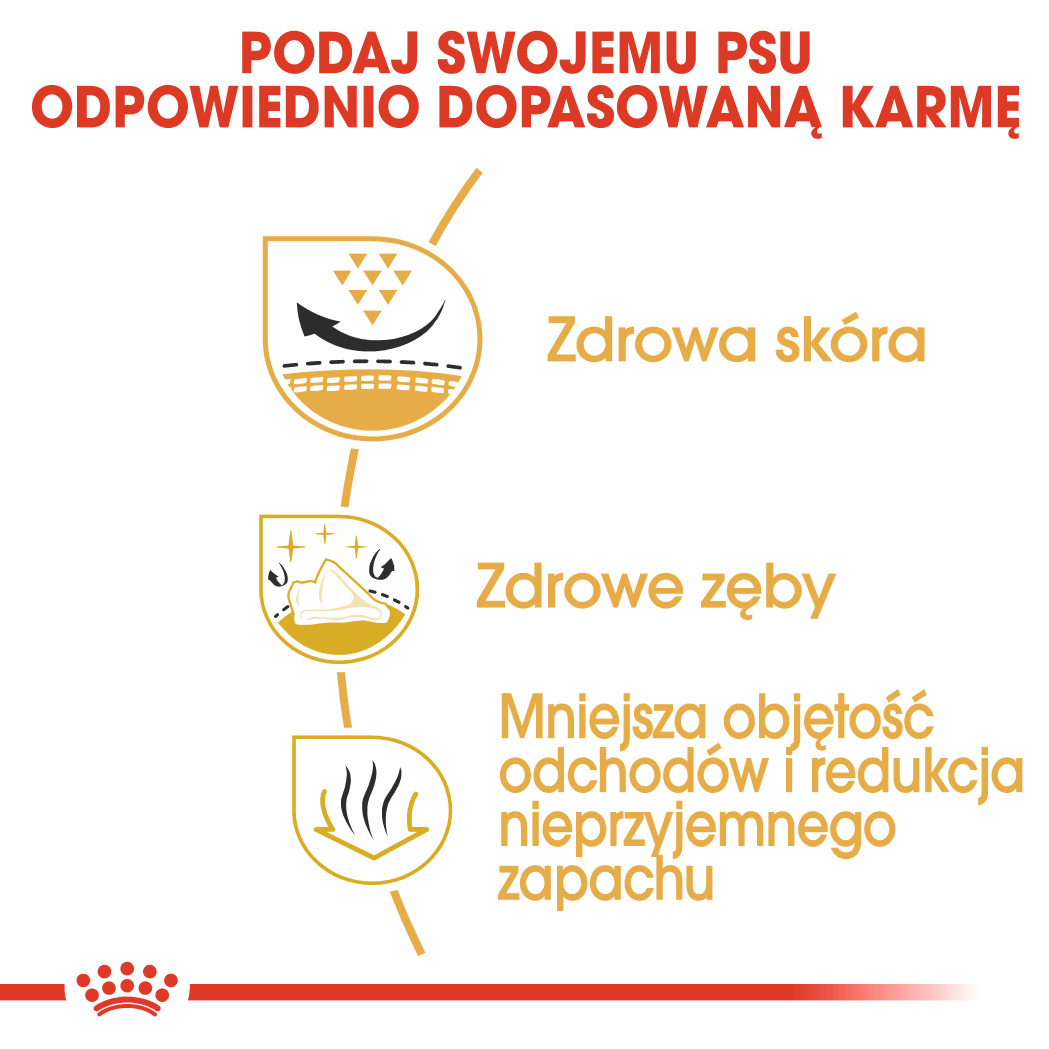 Dzięki karmie ROYAL CANIN® Shih Tzu Adult możliwe jest wspomaganie zdrowia przewodu pokarmowego oraz redukcja objętości odchodów i intensywności ich zapachu.