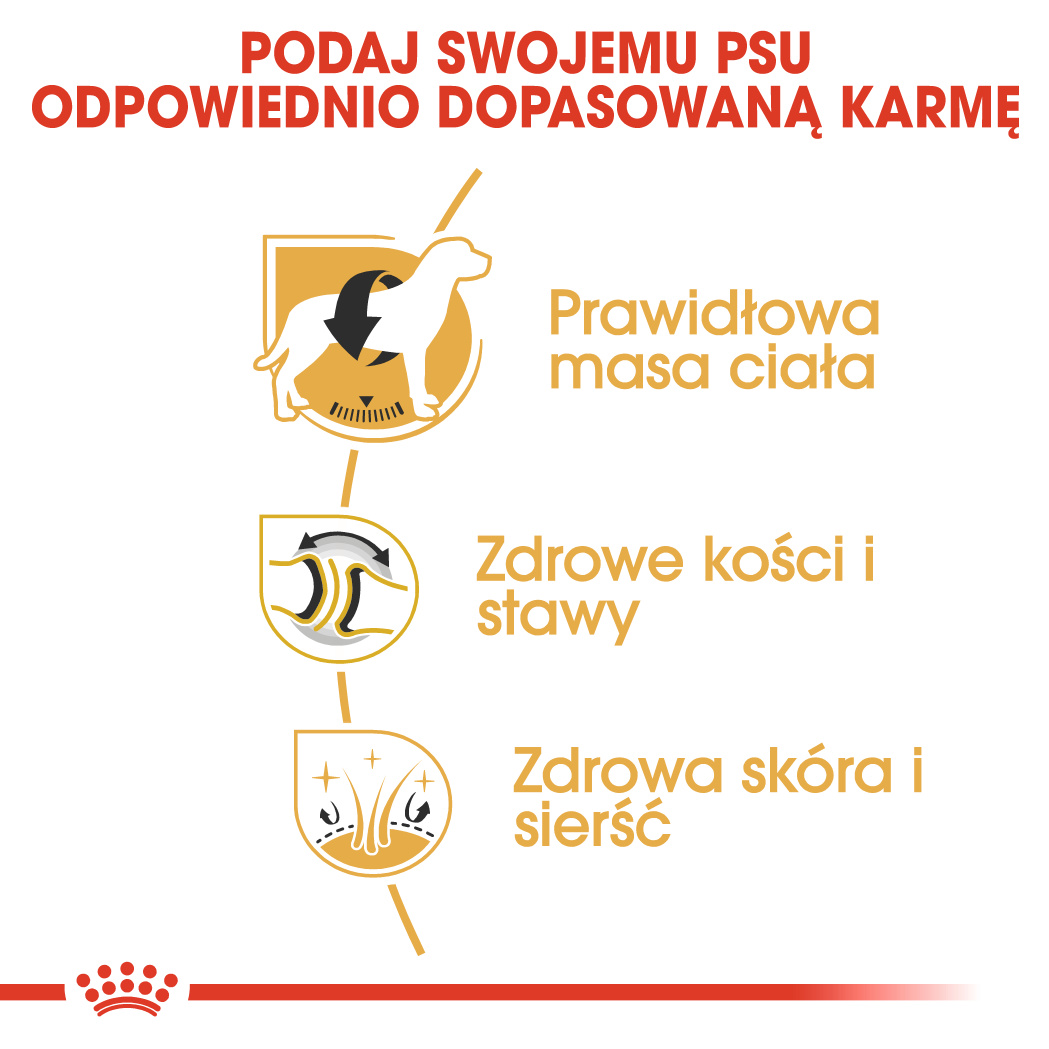 Karma ROYAL CANIN® Labrador Retriever Adult, przeznaczona dla psów rasy labrador retriever powyżej 15 miesiąca życia, została opracowana specjalnie pod kątem potrzeb Twojego dorosłego psa.