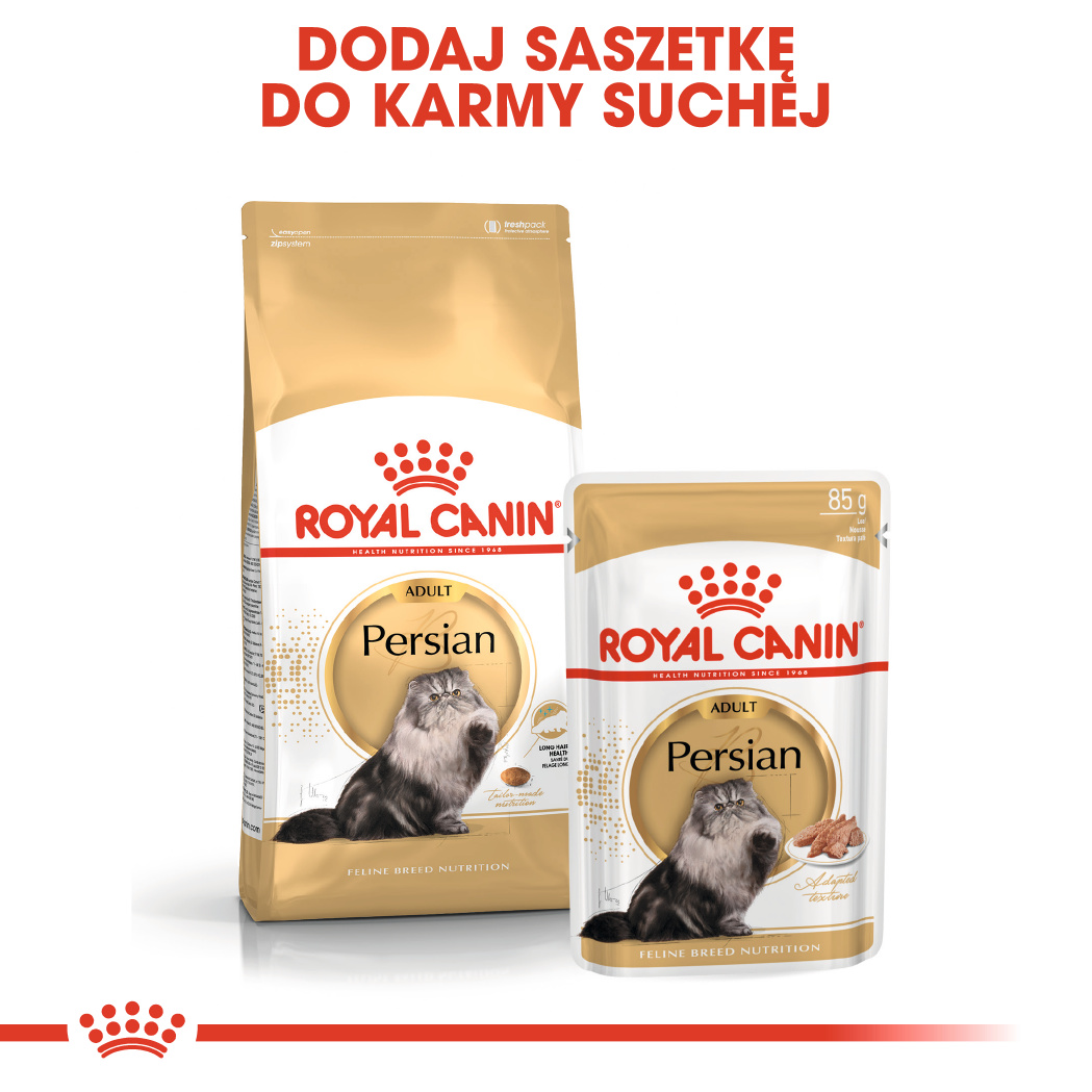 Mając na uwadze preferencje żywieniowe kotów, karma ROYAL CANIN® Persian Adult jest dostępna także w formie smakowitego pasztetu. W przypadku żywienia karmą mokrą i suchą należy zapoznać się z tabelą dawkowania, aby dobrać odpowiednią porcję poszczególnych karm.